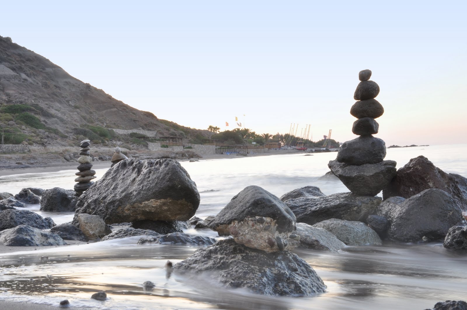 On to the Greek island of Kos en famille. About a mile from our hotel, past the Italian hotel (bella, bella), past the German hotel (put ‘em away love) we came across a rather intriguing landscape of balancing stone piles. Reminds me of Richard Long’s landscape natural work. I remember a few years back a micro-debate on a forum as to whether some geezer balancing stones could legitimately claim to be an artist. These piles were curious, effective, pointless, thought provoking and fun. Sounds like a reasonable definition of art dontyathink.
