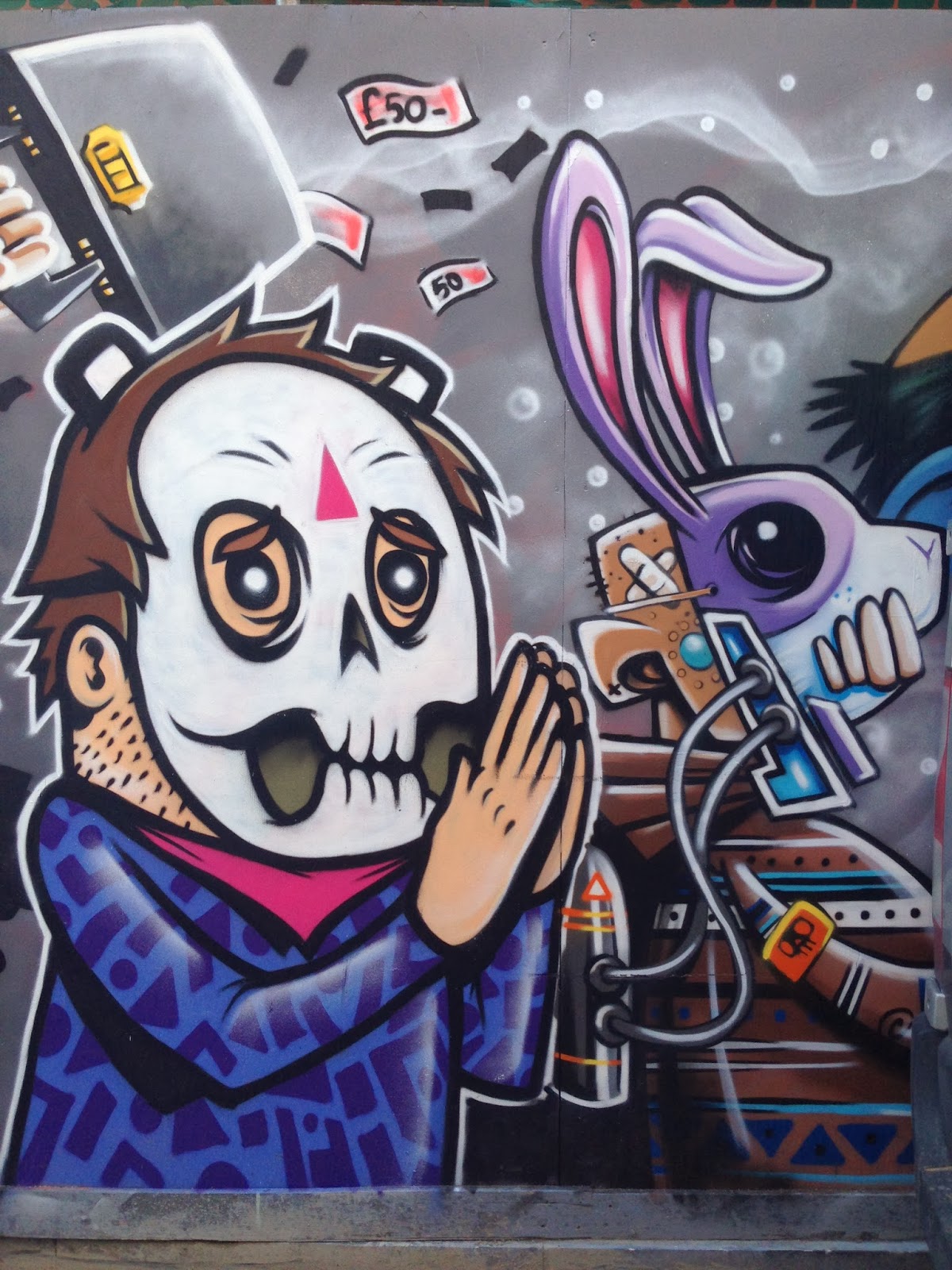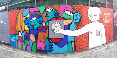 Guess which graffiti cubist had a new show opening in London during the month! Yup – Hunto, seen here collaborating on a mural with Millo who…. has a show coming up this month, who’d have thought?