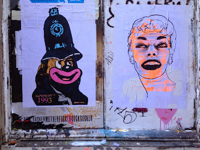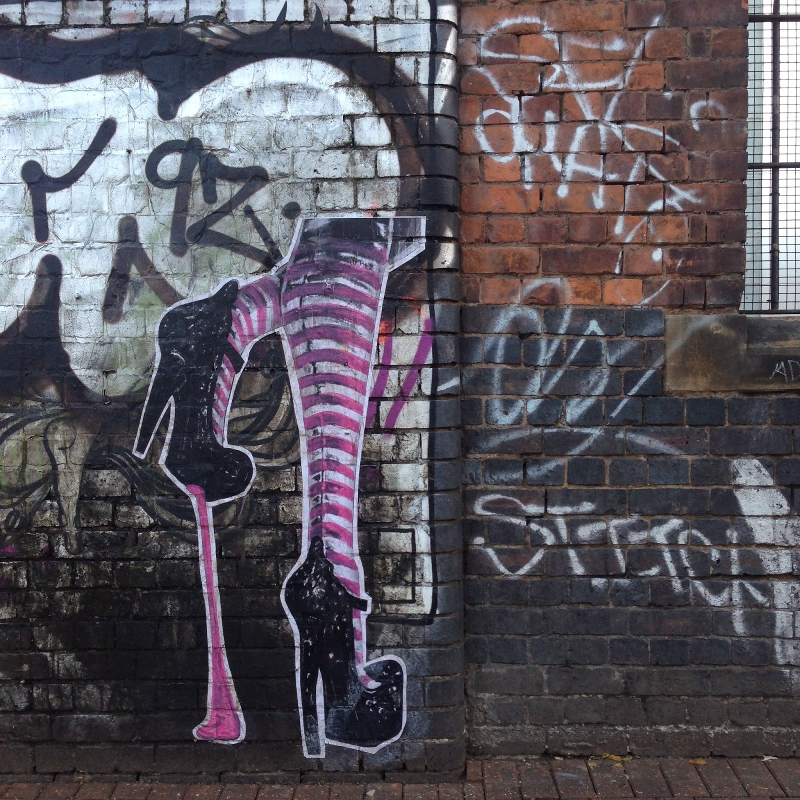 Stripy tights and stilettos usually means just one artist – INSA, however, we’re not sure this poor unfortunate fashion victim seemingly stuck with a bit of Ben Wilson art work on their platform stilettos is by INSA. TBC.