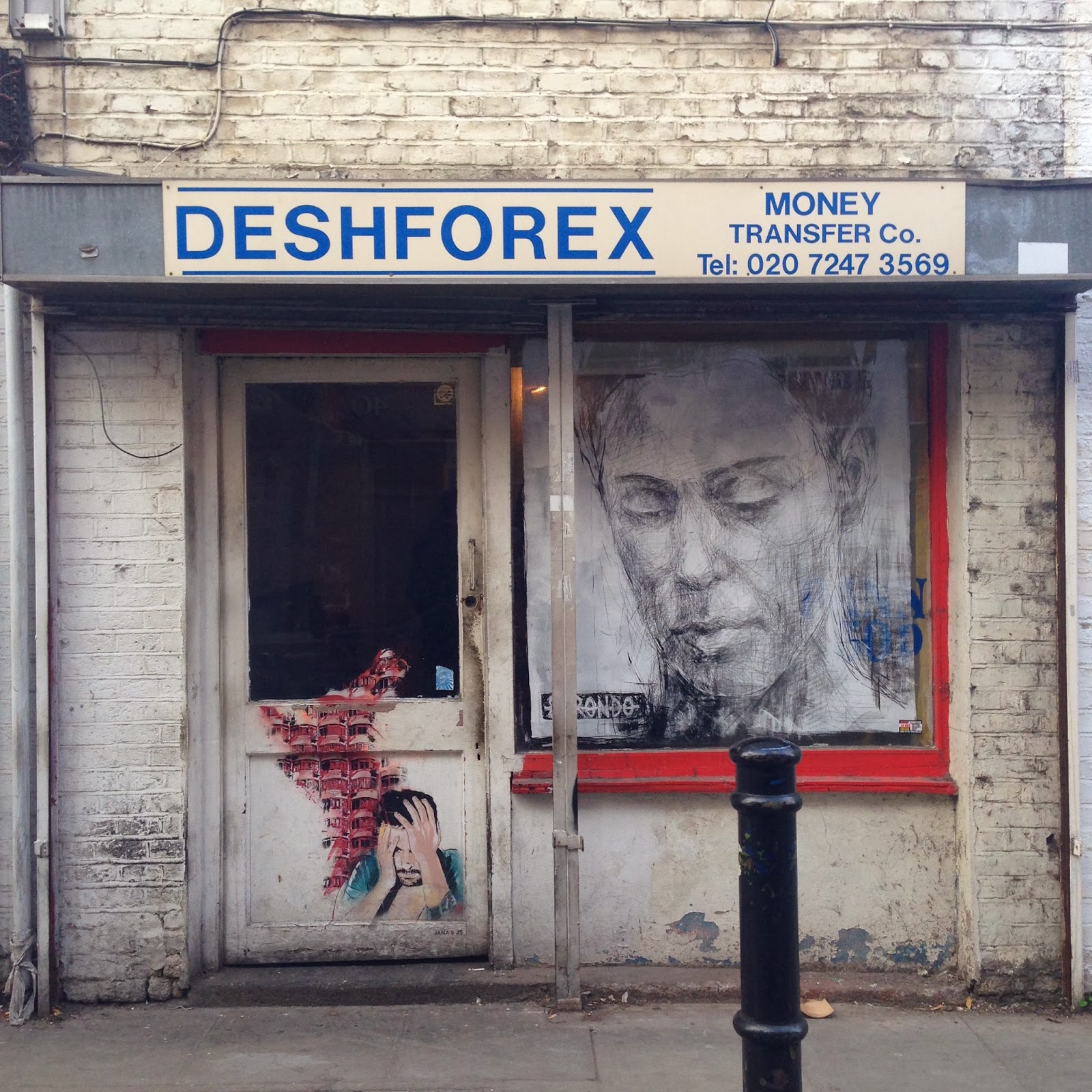 Parlee – Essex Rockers, daubed a Global Street Art mural hoarding which panel by panel is getting smaller with each passing day it seems as the building being built behind the hoarding approaches completion. Grimsby St will be a considerable duller place with those hoardings gone and it will be interesting to see if the current tolerance of the un-curated street art on the opposite wall survives whatever new businesses and residents move into that new building.